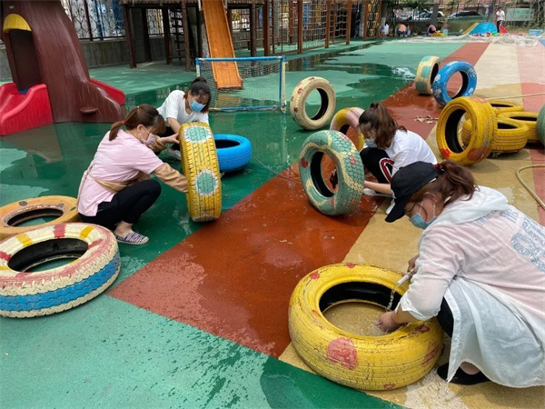 为确保我园顺利通过核验且有序开园,在园领导的组织和领导下,老师们时刻准备着。
